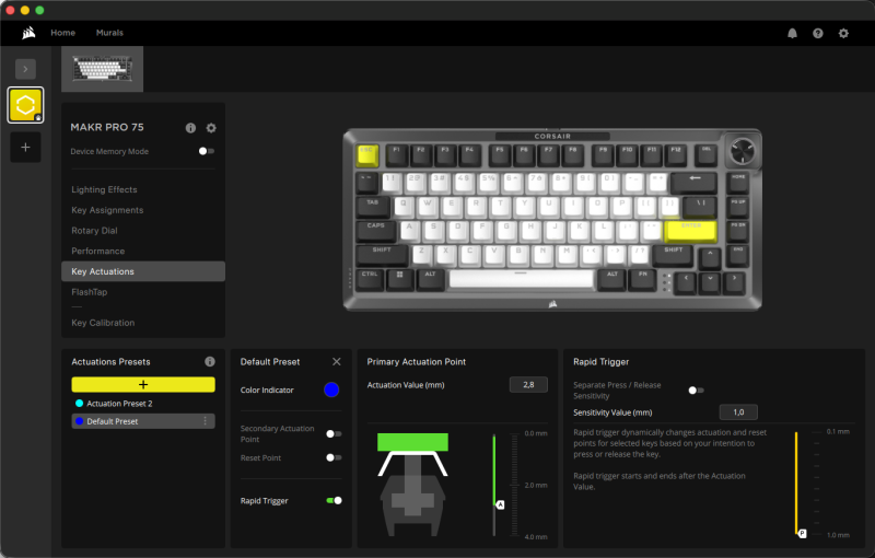 Co jednak tak naprawdę daje nam magnetyczny przełącznik i dlaczego jest lepszy od zwykłego "mechanika"? Przede wszystkim możliwość dopasowania progu aktywacji klawisza zarówno pod kątem siły nacisku jak i dystansu po jego wciśnięciu. Ta funkcja właśnie potwierdza ostateczną elastyczność w korzystaniu z tej klawiatury. Chcesz błyskawicznej reakcji w grach i niskiego progu aktywacji w celu uzyskania przewagi, możesz to zrobić.