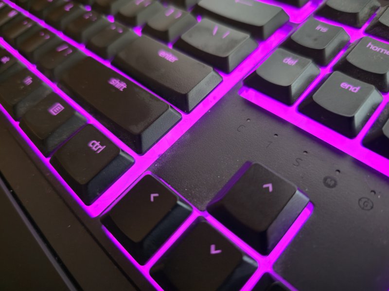 Co innego oznaczenia Caps Lock, Num Lock i Windows Lock – te bowiem wyraźnie odstają od reszty (chociażby niebieskim kolorem) i są bardzo wyraźne. Do tego stopnia, że nawet przy włączonym podświetleniu, ustawionym na maksymalną jasność, ich aktywacja sprawia, że klawiatura wydaje się zupełnie nieoświetlona. Nie mogę się dobrze również wypowiedzieć na temat jakości samego sprzętu.