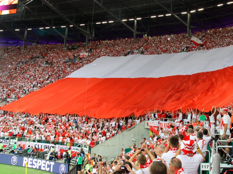 Uszyta na poprzednie piłkarskie mistrzostwa Europy olbrzymia - 52x30 m - biało-czerwona flaga "wesprze" polskich piłkarzy podczas ćwierćfinału Euro 2016 w Marsylii z Portugalią. Na Stade Velodrome dotarła w czwartek. (http://www.tvn24.pl)