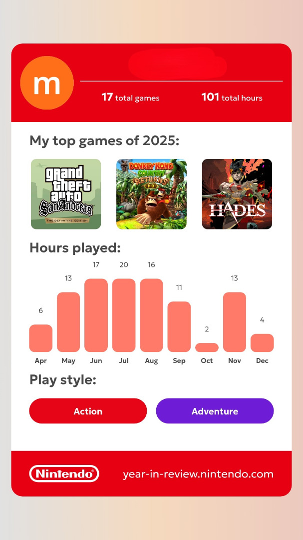 Po zalogowaniu się na stronie Year in Review użytkownicy mogą sprawdzić najczęściej ogrywane tytuły, liczbę godzin spędzonych przy konsoli, preferowane gatunki oraz statystyki z Nintendo Switch i Nintendo Switch 2. Na koniec każdy wybiera swoją „grę roku”, a całość można udostępnić w mediach społecznościowych z hashtagiem #NintendoSwitch2025.