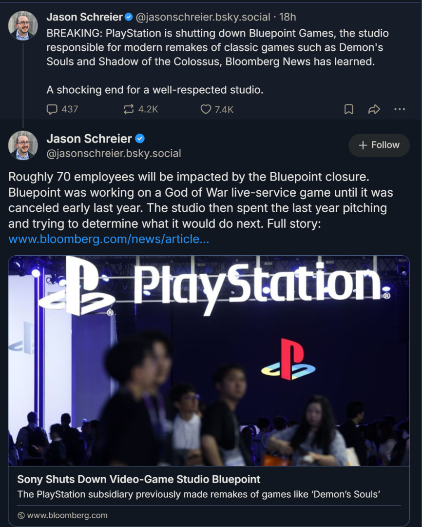 Powody takiej decyzji są proste: pieniądze. Po rzekomej analizie ostatniej działalności studia szefostwo Sony miało podjąć decyzję o jego skasowaniu. Gwoździem do trumny mógł być fakt, że Bluepoint zostało niejako zmuszone przez niesławnego poprzedniego szefa Sony — Jima Ryana, do produkcji gier live-service, które to wybitnie nie spodobały się graczom. Taki projekt w świecie God of War miał być przez firmę tworzony i ostatecznie skasowany, a pieniądze poszły w błoto.