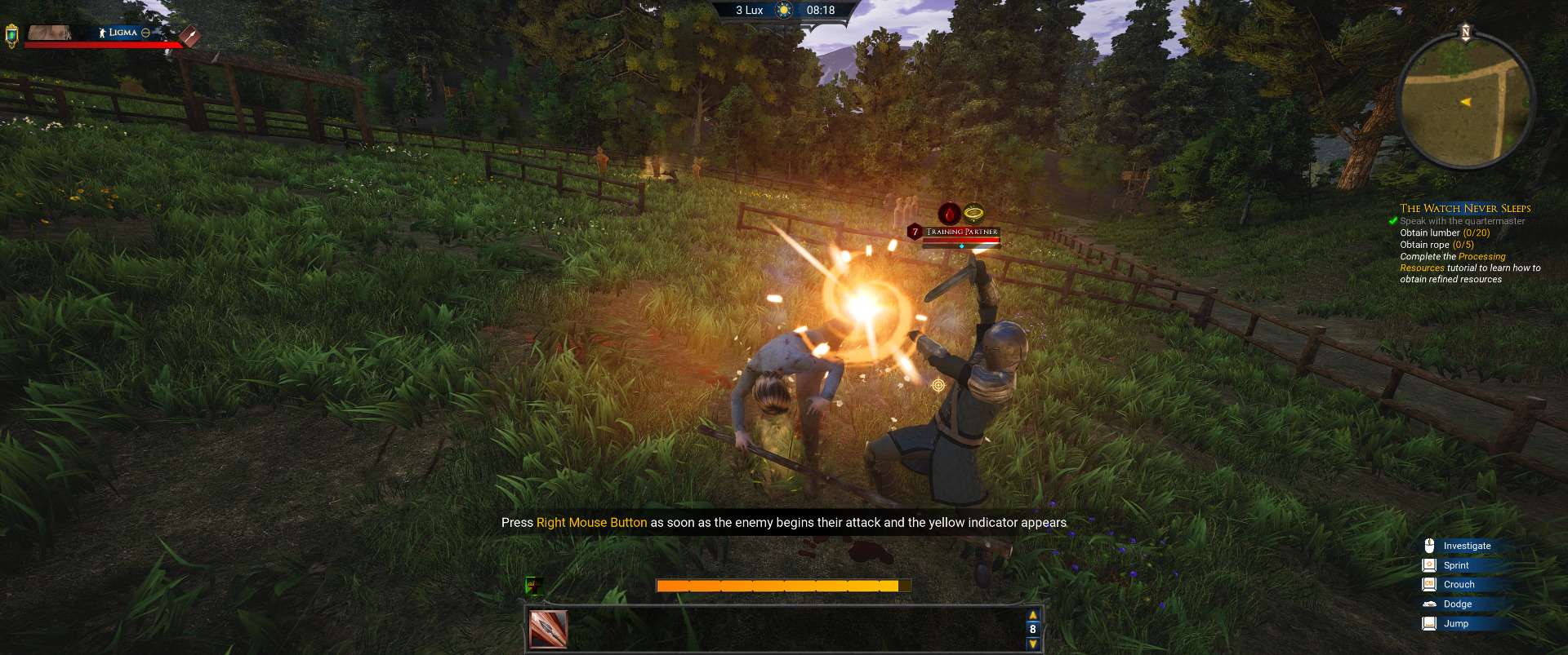 Rąbanie drewna daje nam doświadczenie w ramach odpowiedniego drzewka rozwoju zdolności wydobywczych, a zabijanie szczurów czy innych bandytów nagradza nas doświadczeniem ogólnym przekładającym się na nasz poziom oraz punkty atrybutów, jakie możemy zainwestować w statystyki pokroju siły, zręczności czy inteligencji. Za chwilę też okazuje się, że drewno możemy przerobić na deski, z włókien wytworzyć linę, a zebrane żelazo przetopić.