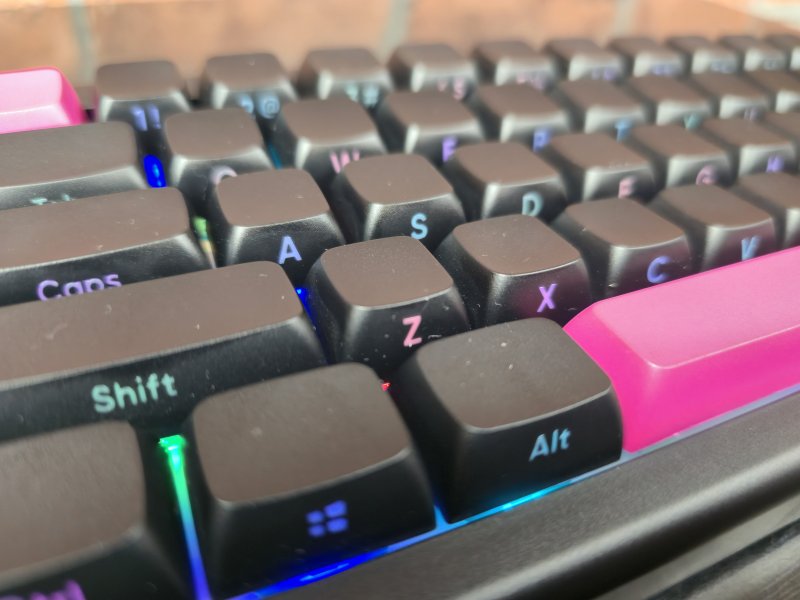Zresztą osoby, które obsługiwały już podobne sprzęty i mają wyrobioną pamięć mięśniową, nawet tego nie odczują. Nie trzeba bowiem patrzeć na litery oraz znaki na klawiaturze, żeby z niej korzystać, choć nowi użytkownicy, szczególnie ci niemający wcześniej do czynienia z klawiaturami 65%, mogą mieć pewne trudności. Widoczność poprawia na pewno podświetlenie, o ile jest aktywne, ale o tym później.