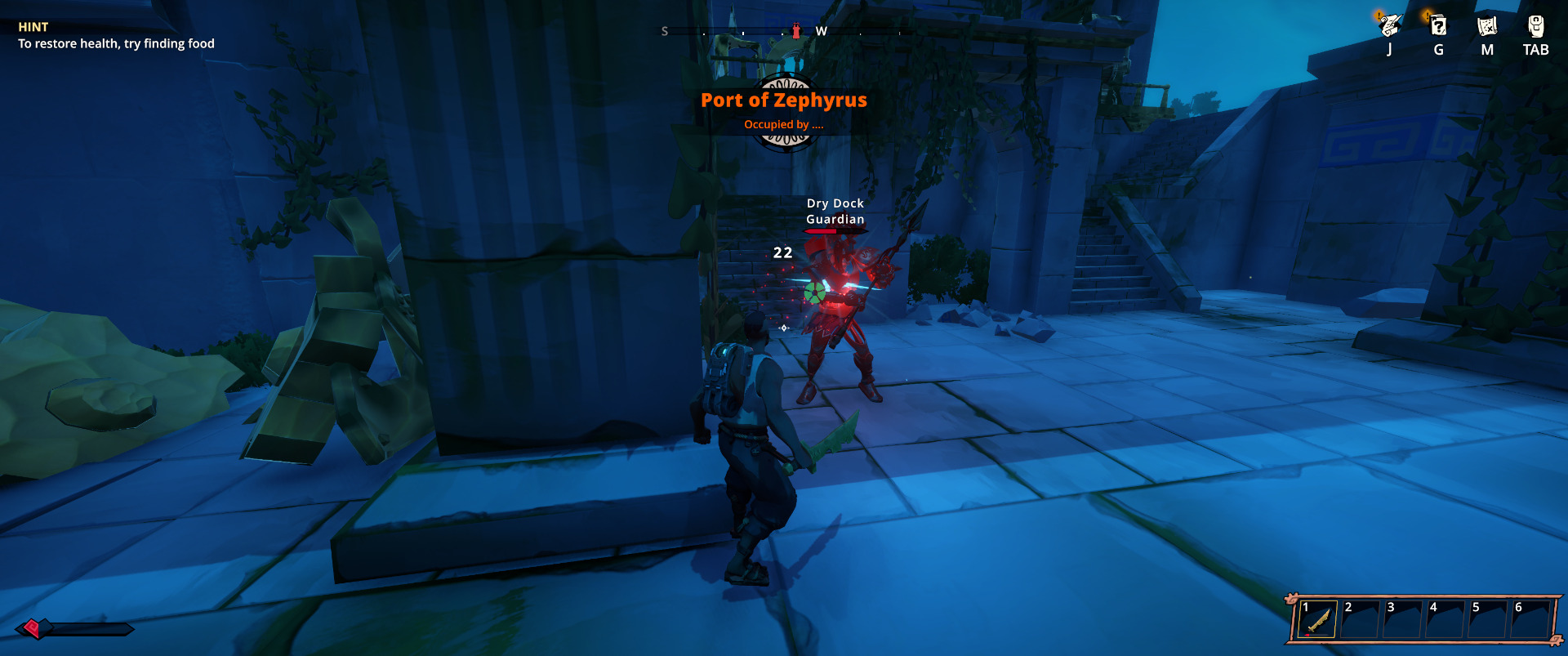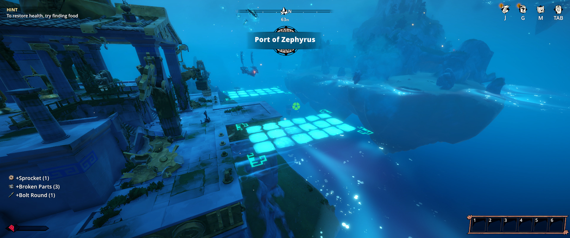 Miło, że gra nie wrzuca nas od razu na głęboką wodę bez żadnych wskazówek odnośnie do tego, od czego powinniśmy zacząć. Przejmując kontrolę nad postacią, dostajemy od razu nasz statek (choć pozbawiony niezbędnych do poruszania się żagli) oraz zadanie przywrócenia go do stanu używalności.