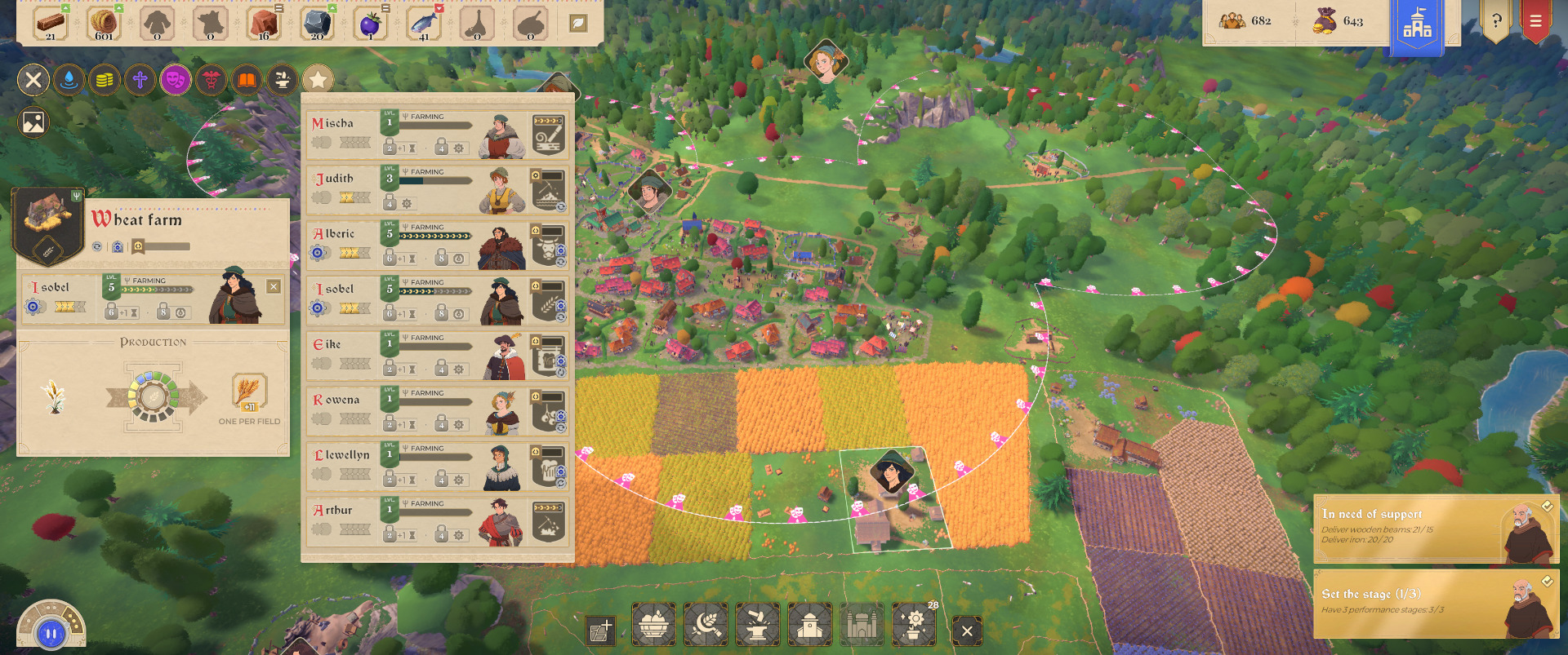 Po pewnym czasie pojawia się też możliwość przydzielenie jednemu z naszych obdarowanych smykałką do nauki podwładnych ich własnego przysiółka. Warto wybrać jako kierownika kogoś z jak najwyższymi umiejętnościami, ponieważ wtedy wszystkie budynki w okolicy pracują bardziej wydajnie. Żonglowanie przybocznymi to bardzo udany dodatek, który wprowadza do zabawy dodatkową warstwę optymalizacyjną.