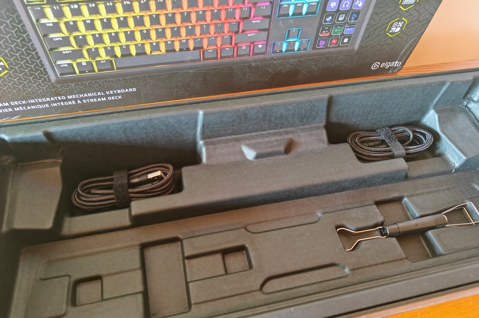 Co ciekawe, Corsair dorzucił nie jeden, a aż dwa kable USB. Oba w oplocie, oba sprawiają wrażenie bardzo solidnych. Rozwiązaniem zagadki dwóch kabli, są trzy porty USB-C, w jakie wyposażona jest klawiatura. W rzeczywistości do działania potrzebujemy tylko jednego przewodu. Drugi jest opcjonalny, jeżeli chcemy skorzystać z funkcji USB passthrough. Wtedy możliwe jest podłączenie innego urządzenia (np. myszki) do klawiatury, zamiast ciągnąć kabel aż do jednostki centralnej. To bardzo fajny dodatek, którego dotąd w innych konstrukcjach nie spotkałem.