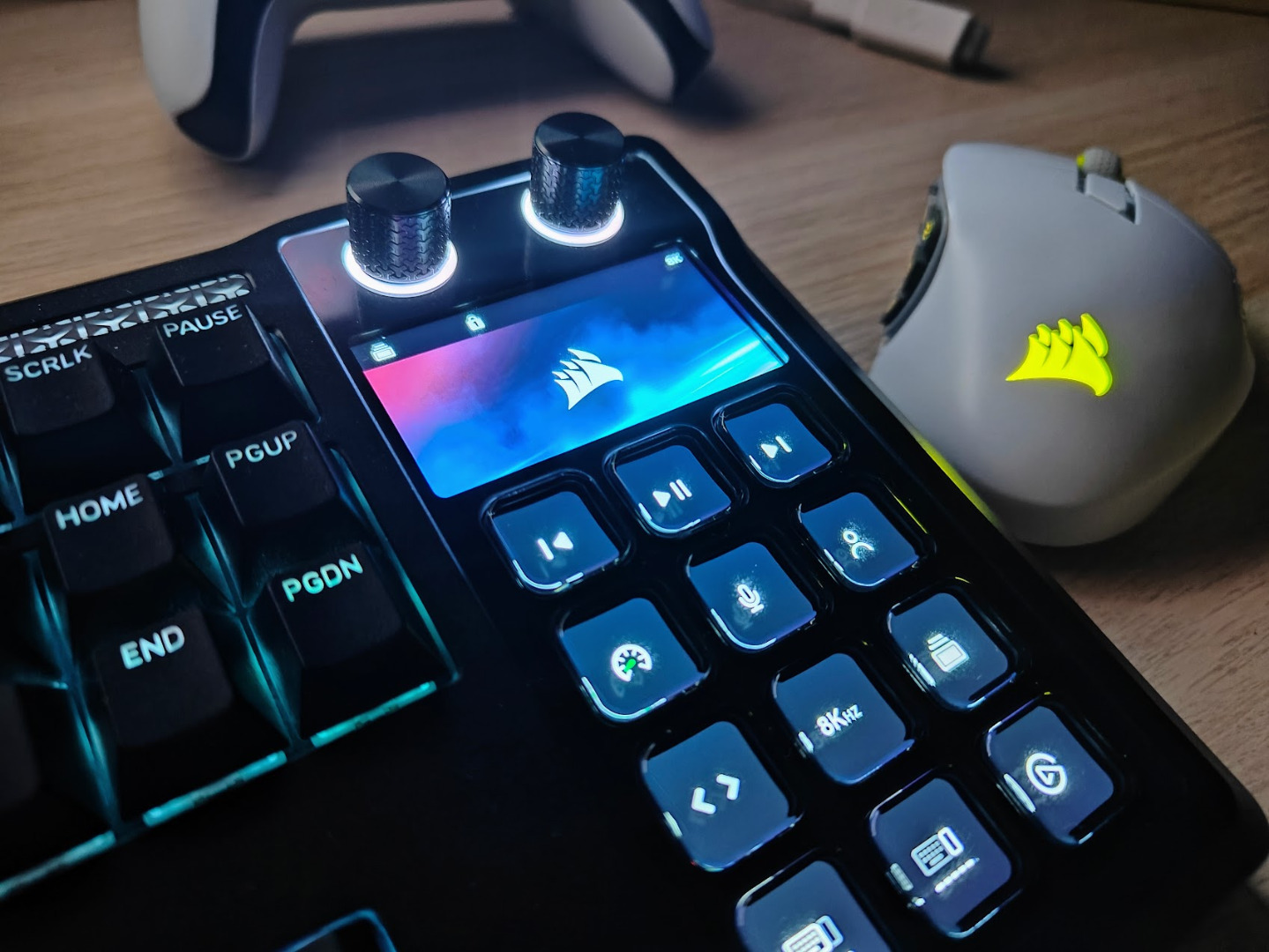 Pora porozmawiać o elemencie wyróżniającym GALLEON 100 SD na tle konkurencji. Mowa, rzecz jasna, o wbudowanym Elgato Stream Decku, za którego sprawą funkcjonalność sprzętu od Corsair wykracza daleko poza wszystko to, co oferują inne, pełnowymiarowe klawiatury.