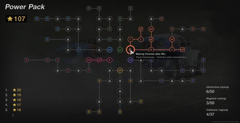 Między poszczególnymi zawodami mamy pola zablokowane za określoną liczbę gwiazdek. Jeśli zdobędziemy ich wystarczająco, odblokujemy zawartość, która się za nimi kryje. Są to różnego rodzaju nagrody, od biletów na losowanie wszelakich dóbr w grze (o różnym poziomie rzadkości) po gwarantowane benefity w postaci kredytów czy konkretnych pojazdów. Po ich zdobyciu często możemy odblokować kolejne zawody w tej samej tematyce, po których ukończeniu pojawią się kolejne bonusy, tym razem o większej wartości.
