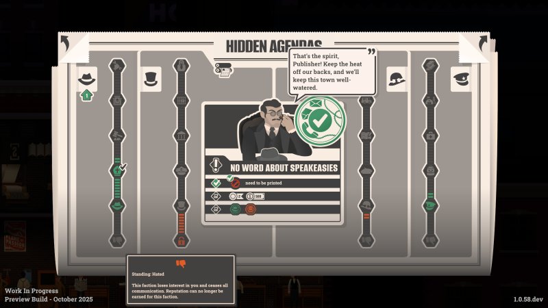 Nie, aż tak dobrze, to nie ma, na co składa się kilka różnych czynników, w tym ogólna miałkość gameplayowa. Najbardziej emocjonującą częścią gry jest wręczanie łapówek potencjalnym informatorom, jako że mamy określony czas na przedstawienie oferty. Damy za dużo, zgodzą się od razu, ale my stracimy więcej kasy – damy za mało, to nie będziemy mogli dokończyć artykułu.