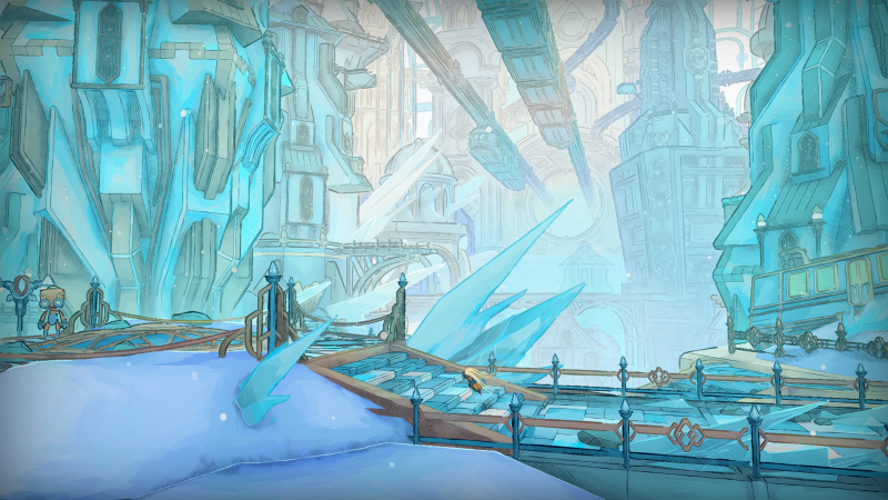 Statek, po którym przyjdzie nam się przemieszczać, jest ogromny, a jego osobne segmenty są całkiem różnorodne. Odwiedzimy więc skute lodem miasto, gęste tereny zielone oraz mechanizmy nagrzane do temperatury wrzenia. Świat jest także mocno wypełniony dodatkową zawartością w postaci punktów zdrowia, ukrytych modyfikatorów i przedmiotów fabularnych. Jak na gatunek metroidvanii przystało, pierwsze godziny nie są zbyt atrakcyjne pod względem eksploracji, ale gdy już odblokujemy odpowiednie umiejętności, takie jak możliwość wspinania się po ścianach, mapa znacząco się otwiera, umożliwiając dotarcie do wielu interesujących miejsc.