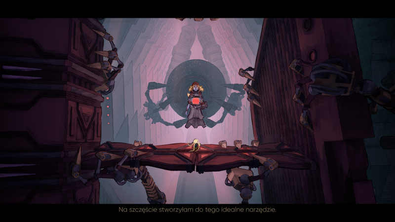 Dodatkowo przywracanie zdrowia, bez założonego ulepszenia, wymaga od nas posiadania zebranych zasobów, więc szybko może nam zabraknąć surowców, a w trakcie etapu nie ma możliwości zmiany modyfikatorów. Żeby było jeszcze trudniej, twórcy wprowadzili wyjątkowy system stałej utraty punktów zdrowia wraz z postępem fabularnym. Jest to narzędzie do prowadzenia narracji, więc może nie powinienem się tego czepiać, ale punkty zdrowia w Mio mają ogromne znaczenie. Zdobycie jednego wymaga bardzo wnikliwej eksploracji oraz wydania ciężko zarobionej waluty. Jeśli jednak nasza droga przechodzi przez konkretne miejsca fabularne, to punkt zostaje utracony całkowicie. Do końca rozgrywki będziemy więc oscylować wokół 4–6 punktów zdrowia, a poziom trudności jest na tyle nieprzyjazny i szybko rosnący, że to wszystko można utracić w zaledwie kilkanaście sekund, nie zawsze z winy gracza. Finałowe etapy platformowe wymagają od nas koordynacji i zwinności, a sterowanie często nie spełnia oczekiwań. Używanie zdolności nie jest wystarczająco precyzyjne, co często kończy się niezłapaniem danego obiektu i utratą życia.