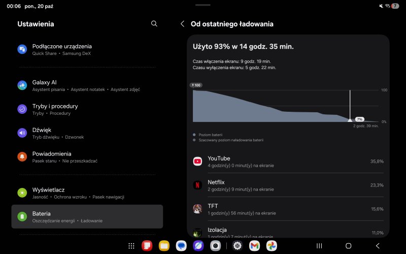Oglądając filmy na YouTube oraz na Netflix w najwyższej dostępnej jakości i rozdzielczości, oraz grając w te produkcje jedna za drugą, SoT wyniósł od 6 godzin i 44 minut, do ponad 9 godzin na jednym ładowaniu. Rzecz jasna w międzyczasie włączony był mocno bateriożerny moduł Bluetooth, aktywne połączenie Wi-Fi oraz jasność adaptacyjna. Przy mniej intesnywnym użytkowaniu oznacza to, że bateria powinna wystarczyć przeciętnemu użytkownikowi na kilka dni.