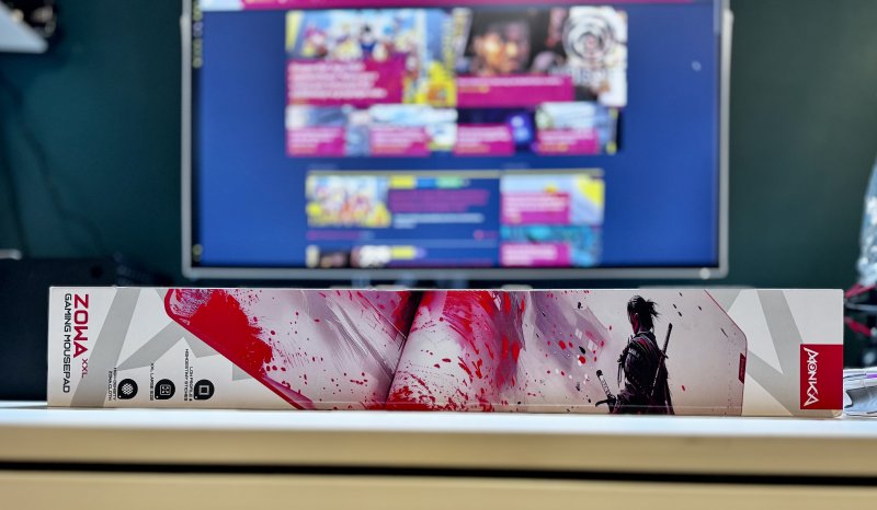 Monka Zowa XXL wystartowała więc u mnie z czystą kartą i już po wzięciu opakowania do ręki, zdałem sobie sprawę, jak wielkie bydle jest z tego kawałka materiału. Mamy tutaj do czynienia z wymiarami 1200 x 600 x 3.5 mm. Po rozłożeniu podkładka idealnie zakryła cały mój blat biurka, co było dla mnie miłym zaskoczeniem (nie mierzyłem blatu ani podkładki przed jej otrzymaniem).