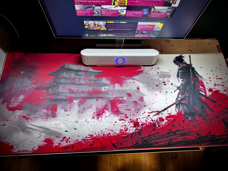 Największe wrażenie wizualne robi oczywiście sama grafika. Motyw samuraja z charakterystyczną japońską architekturą w tle jest naprawdę kozacki, a skąpanie tego w krwistej czerwieni, z czarno-białymi akcentami dodaje całości nutki agresji. Materiał, na którym jest wykonana grafika, jest przyjemny w dotyku, nie czuć tutaj żadnych wypustek czy pogrubień i co istotne, myszka przesuwa się na niej bez najmniejszych problemów, precyzyjnie odczytując ruchy z powierzchni podkładki.