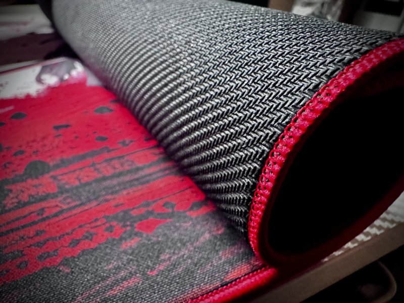 Co jednak mnie dziwi i trochę denerwuje, to fakt, że mimo swojej masy i gabarytów, zastosowania gumowego pokrycia od spodu, co ma zapobiegać przemieszczaniu się po powierzchni, mata potrafi się nieco ślizgać po biurku. Dla najlepszych testów zawsze czyszczę blat odpowiednim preparatem przed położeniem tego typu produktu, aby zmaksymalizować efekt przyczepności. Nie miałem takiego problemu z nieco mniejszą, choć nadal pokaźną propozycją od Genesisa. Być to może to kwestia gorszej jakości gumy, która to sprawia wrażenie bardziej suchej w dotyku — mniej przyczepnej.