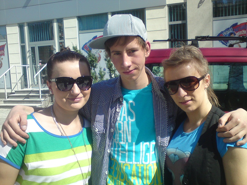 Parę metrów dalej trafiliśmy na Gabrysię, Karolinę, Jolę, Ewelinę, Kasię. Dziewczyny konsole znają, zdarzało im się zagrać, między innymi w przygody „rudego lisa”. Ten według ich słów - „tak sobie skakał”. Graczem dla nich może być każdy i w żaden negatywny sposób nie wyróżniają się z tłumu, są normalnymi osobami, dla których gry stanowią ciekawy sposób spędzania wolnego czasu. Dziewczyny nie spotkały się z przypadkami uzależnienia i przesadnego przesiadywania przed konsolą. Jak więc widać nie jesteśmy źle odbierani, ale według napotkanych dziewczyn za mało staramy się wiązać swoją przyszłość z omawianym hobby. Po owym stwierdzeniu rozmowa dobiegła końca i nadszedł czas aby zrobić fotkę. Do zdjęcia niestety zgłosiły się tylko Gabi i Karolina, mam nadzieje, że Was dziewczyn nie pomyliłem, jak coś piszcie w komentarzach.