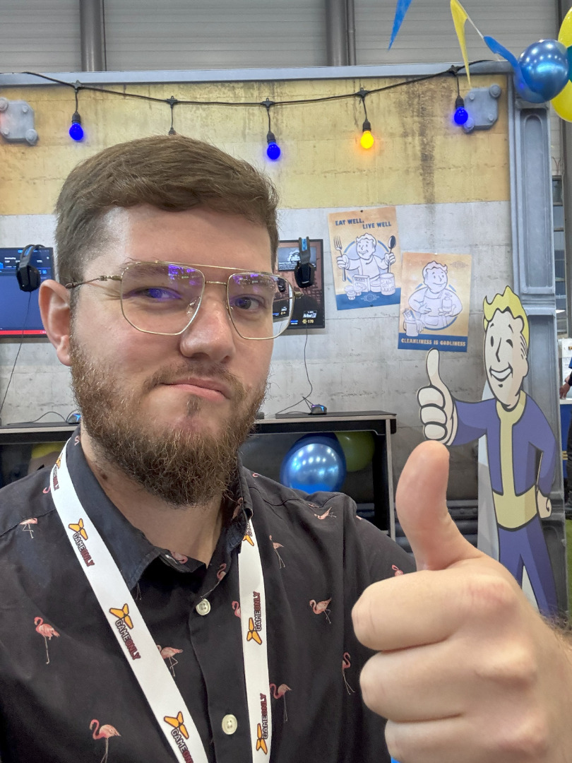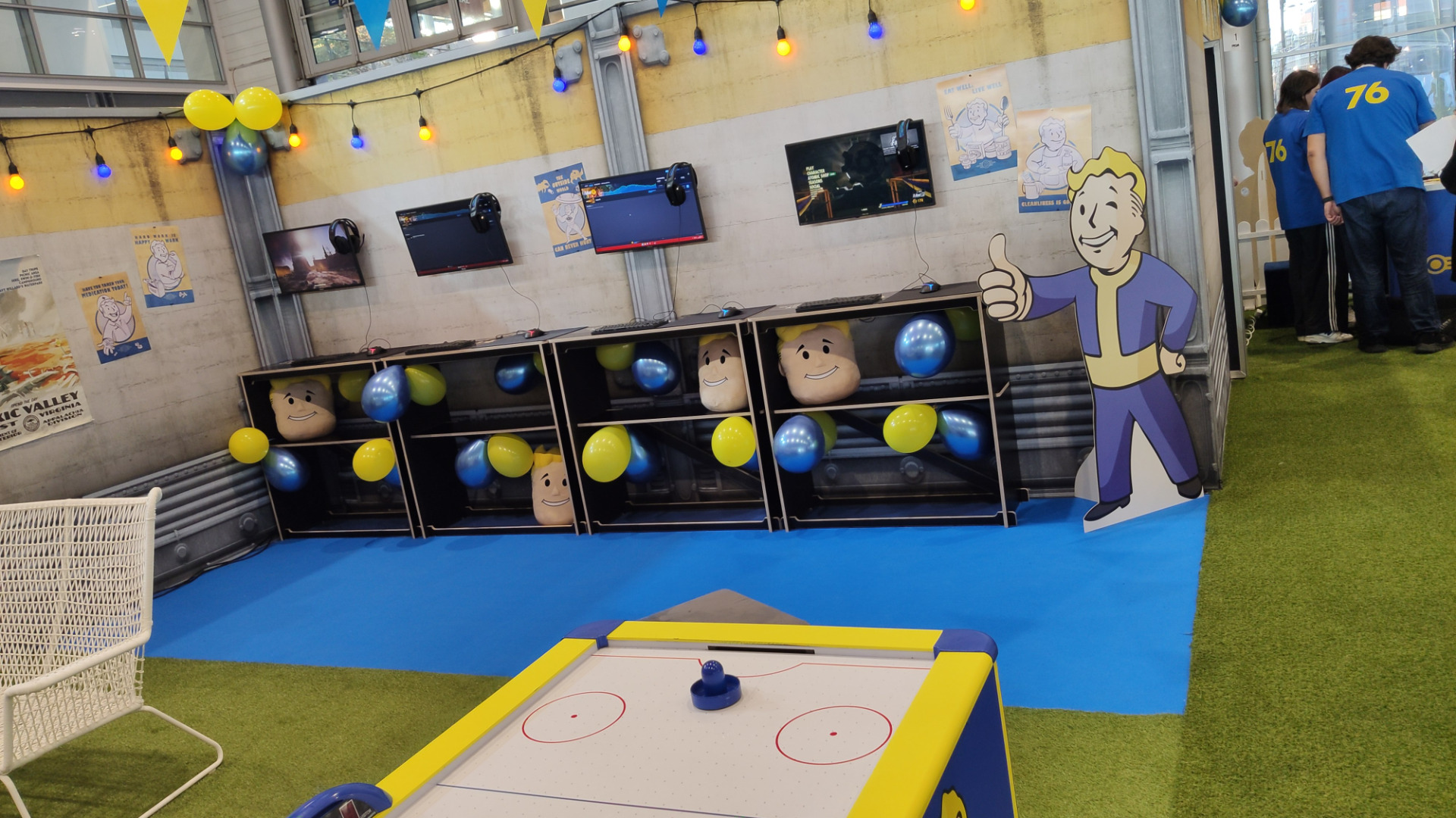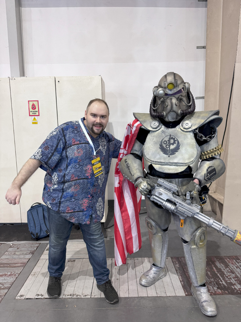 Naszym pierwszym łupem padło stoisko Bethesdy. Ta firma w tym roku postawiła na Fallout 76 oraz Starfield i przygotowała całe mnóstwo atrakcji, a wśród nich między innymi możliwość wydrukowania identyfikatora mieszkańca krypty, który oczywiście musiałem zdobyć! ? Do tego zgarnąć można było oczywiście szumnie zapowiadane draże krypciarze, czyli specjalne czekoladowe drażetki przy współpracy z firmą Skawa, a na deser czekało stoisko tatuażysty, który wykonywał tatuaże znane z Fallouta.