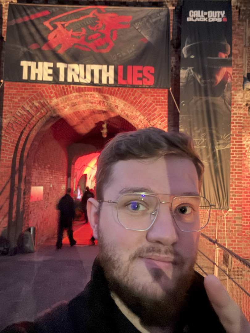 Napomkniemy tylko, że wraz z Rafałem byliśmy pod wrażeniem organizacji samej imprezy. Przygotowane bardzo klimatyczne pomieszczenia starego Fortu Poznań, gdzie zamontowano nie tylko oświetlenie nawiązujące do samego Black Ops, ale przede wszystkim przygotowano cholernie klimatyczne dekoracje. Monitory CRT znane z Black Opsów wyświetlające niegdyś w grze specjalny kod, a główną atrakcją był ogromny blok lodu, z którego artysta z ekipy IceTeam NA ŻYWO wycinał logo Call of Duty Black Ops 6 — robił to prawie 40 minut dopracowując każdy detal. Po prostu WOW! ??