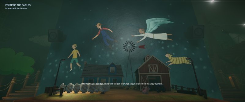 Jak do powyższego dodamy moją ulubioną recenzję w języku angielskim, której autor pisze, iż ta gra „fucks with you in a best way possible”, to już wiemy, że Piotruś jest zainteresowany produkcją. To niezdrowe zaintrygowanie okazało się bardzo słuszne – początkowo przechodzimy do atrakcji, która jest stylizowana na farmę. Podchodzimy do dioramy, wchodzimy z nią w interakcję, dostajemy zadanie.