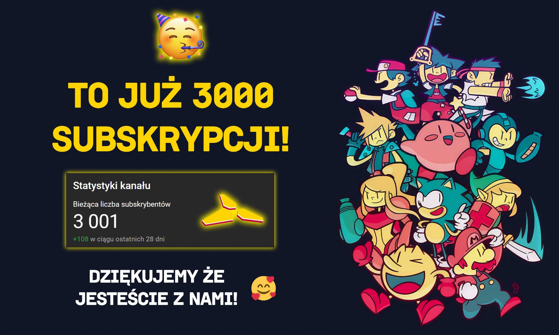 Dziś rano dostałem wiadomość, że jest już nas 3000! ? Dziękujemy wam serdecznie za to, że jesteście z nami i oczywiście nie zmniejszamy na kanale tempa! ? Spodziewajcie się kolejnych recenzji gier, testów i publicystyki nie tylko ode mnie, ale także od Michała "Libry" Maraska, którego filmy bardzo się Wam podobają, co widać po komentarzach! ?
