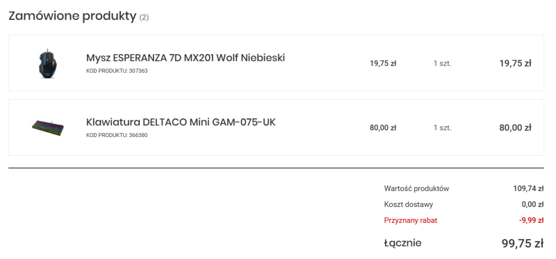 Najtańsza dostawa bowiem kosztowała 9,90 złotych, tym samym przebijając cały budżet o 90 groszy na samej klawiaturze. W każdych standardowych warunkach dopłaciłbym te pieniądze, mocno oszczędzając na myszce, ale niestety, to nie są standardowe warunki. Musiałem się więc obejść smakiem bezprzewodowego mechanika, ale o dziwo opcja klawiatury mechanicznej została.