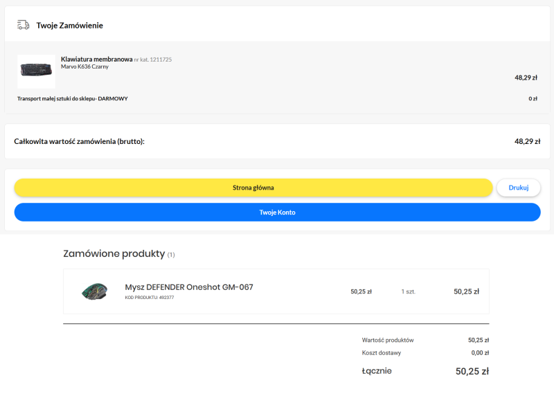 Nie zdziwię pewnie nikogo więc stwierdzeniem, że w ostatecznym rozrachunku… nie padło na żadną z nich. Zestaw „pokazowy” został zasilony przez propozycję od Defender, ale bezprzewodowy model Oneshot GM-067. W przypadku klawiatury padło zaś na Marvo K636, co łącznie odchudziło cały budżet o 98 złotych i 54 grosze – dostawa darmowa do obu punktów (Media Expert i RTVeuroAGD), więc ponownie spacerek, który kosztował nic.
