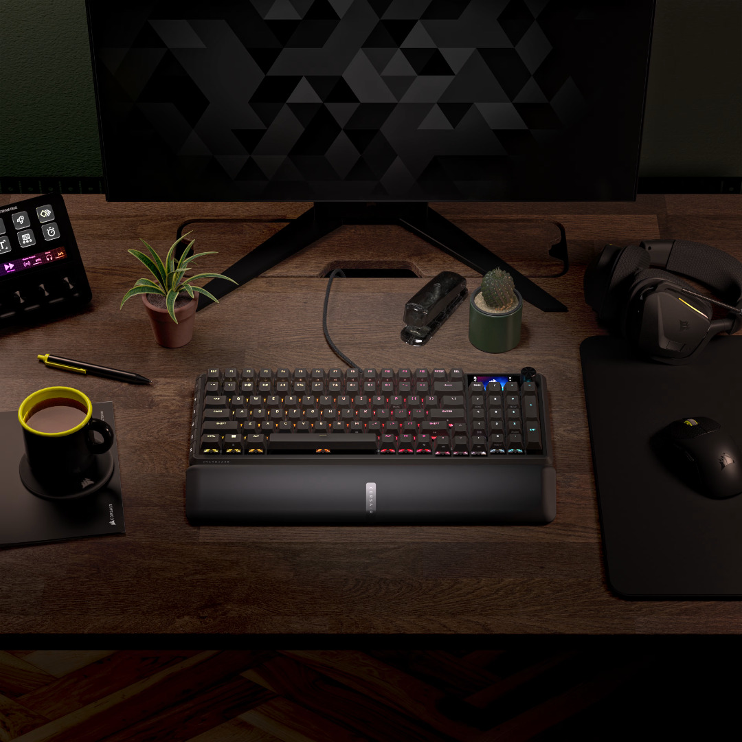 Rafał doznał chęci, aby wypłynąć na sprzętowe wody i wyłowił klawiaturę Corsair Vanguard Pro 96, czyli magnetyczną opcję o rozmiarze 96% i ze wbudowanym ekranem. Solidne, ważące ponad 1 kg urządzenie o konstrukcji Float-Key w zestawie oferuje użytkownikom również podpórkę pod nadgarstki z przyjemnego w dotyku tworzywa.