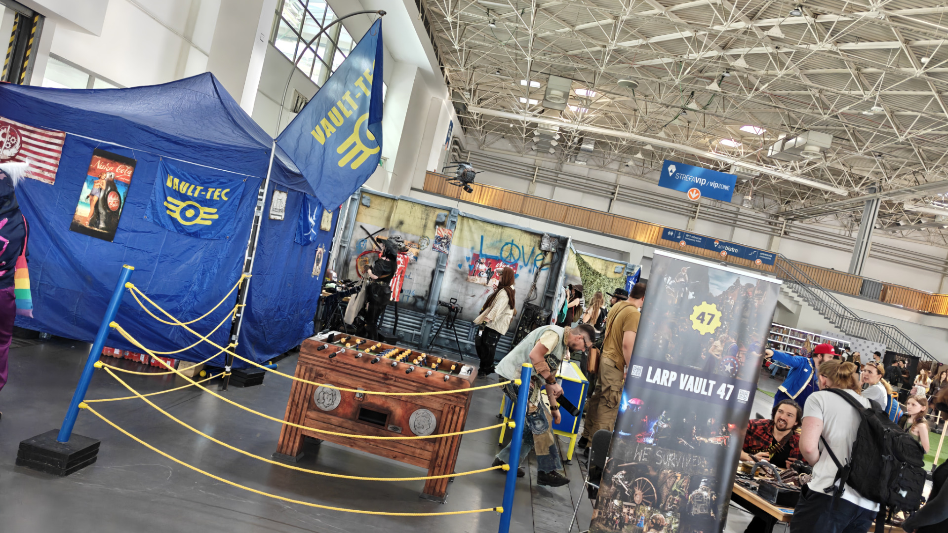 Hala trzy to z kolei kolosalne miejsce usiane tematycznymi wioskami w klimacie gier i fantastyki. Niestety akurat gdy my tam wpadliśmy to była awaria oświetlenia, przez co zdjęcia pozostawiają nieco do życzenia pod względem światła, ale na pewno nadal można mówić o super klimaciku. Nasz cel to oczywiście wioska STALKER, ale po drodze mijaliśmy całe mnóstwo perełek w temacie Warhammera 40K, czy Baldur's Gate, które aż chce się obejrzeć z bliska.