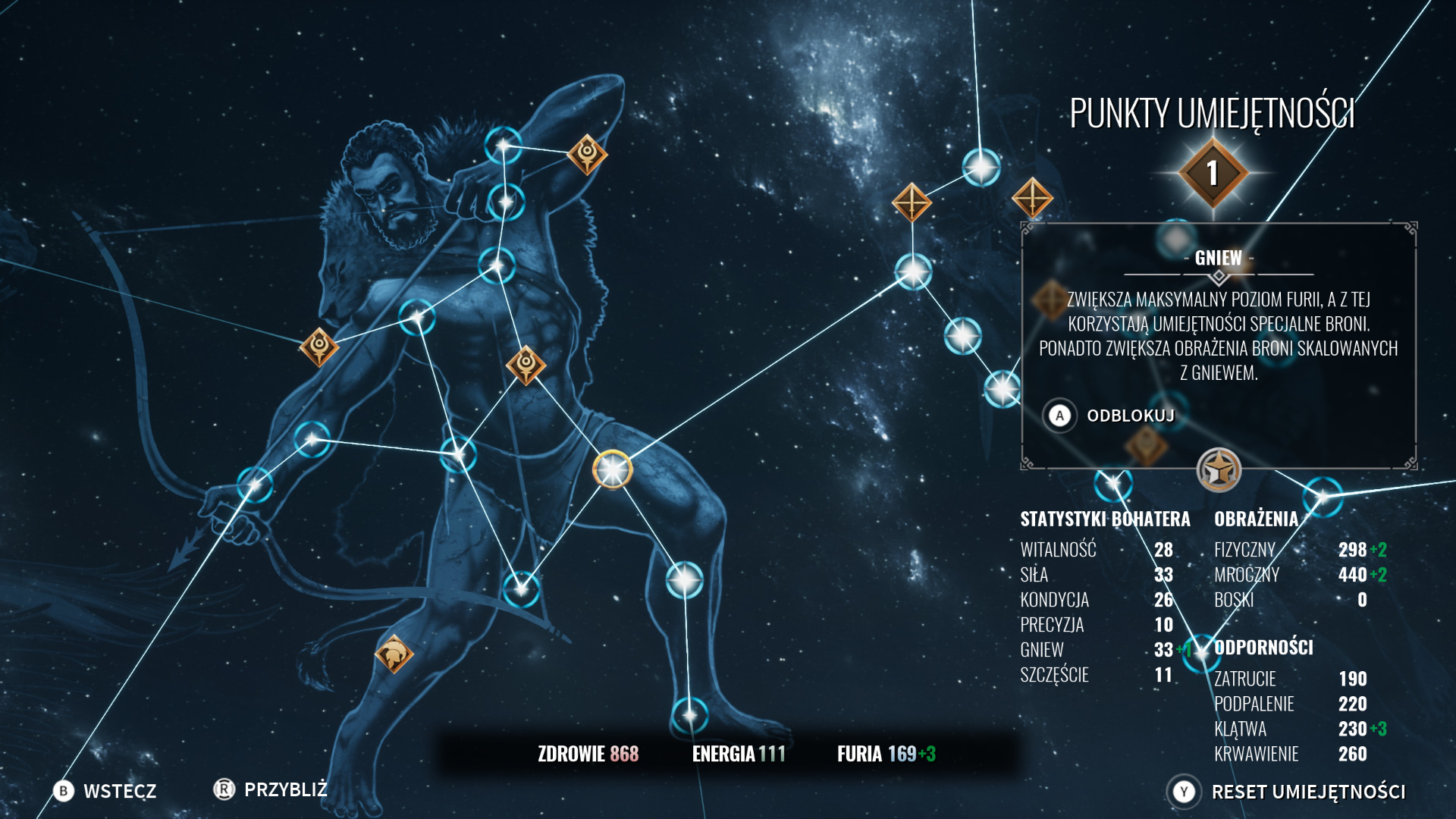 Gameplay w Achilles: Legends Untold przypomina mi nieco gry typu Diablo, Wolcen czy choćby nawet Torchlight. Hack'n'slashowy styl walki jest przeze mnie mile widziany w grach i tutaj został on wykonany całkiem dobrze. Gra oferuje różne typy uzbrojenia, dodatkowe efekty płynące z obrażeń od żywiołów czy nawet wybór między bronią jednoręczną a dwuręczną. Ku mojemu zdziwieniu nie znajdziemy w grze broni dystansowych, a szkoda, bo rzut izometryczny idealnie by pasował do wykorzystania broni zasięgowych. Walka bronią białą jest całkiem przyjemna, choć po pewnym czasie zaczyna lekko nużyć... Powtarzające się sekwencje ciosów może i są satysfakcjonujące, ale z biegiem czasu przestajemy odczuwać adrenalinę przy potyczkach. Podobnie sprawa wygląda z bossami w grze, którzy potrafią się powtarzać, co wpływa bardzo negatywnie na odbiór tej gry. Urozmaiceniem są skille, które dzielą się na ofensywne i pasywne. Choć jest ich kilka, moim ulubionym było kopnięcie w klatę, rodem z filmu "300", oraz zaklęcie broni żywiołem. Na pochwałę zasługuje wygląd drzewka umiejętności, które odwzorowuje konstelacje gwiezdne i w ten sposób zwiększamy statystyki postaci oraz zyskujemy nowe umiejętności. Niestety podczas rozgrywki często miałem problem z namierzaniem przeciwników, ale nie było to aż tak mocno irytujące jak mogłoby się wydawać.