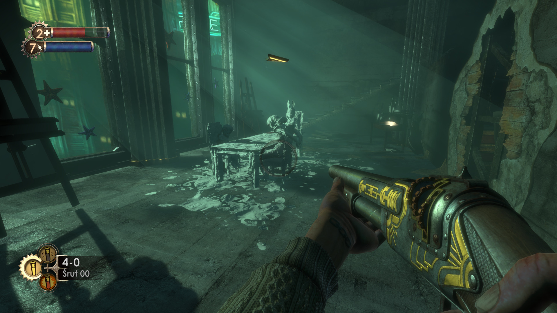 Gameplay to kolejny mocny element produkcji. Bieganie po podwodnym Rapture z giwerą w łapie daje mnóstwo satysfakcji, bo model strzelania jest tu na dobrym poziomie. Trzymając broń w prawej ręce, oddano nam do dyspozycji jeszcze lewą, która dysponuje przeróżnymi mocami. Moce w lewej dłoni to istotny element fabularny, więc nie będę zdradzał skąd je mamy, ale jest ich tutaj dość sporo i są bardzo zróżnicowane. Jedną z moich ulubionych była błyskawica oraz wywołanie szału u przeciwnika. Moce mają również zastosowanie praktyczne, nie tylko bojowe, bo używając telekinezy, możemy przyciągać odległe przedmioty, a taka błyskawica w połączeniu z wodą, potrafi stworzyć śmiertelną pułapkę dla naszych oponentów. Zastosowań jest ogrom, ale polecam eksperymentować na własną rękę, bo jest z czym.