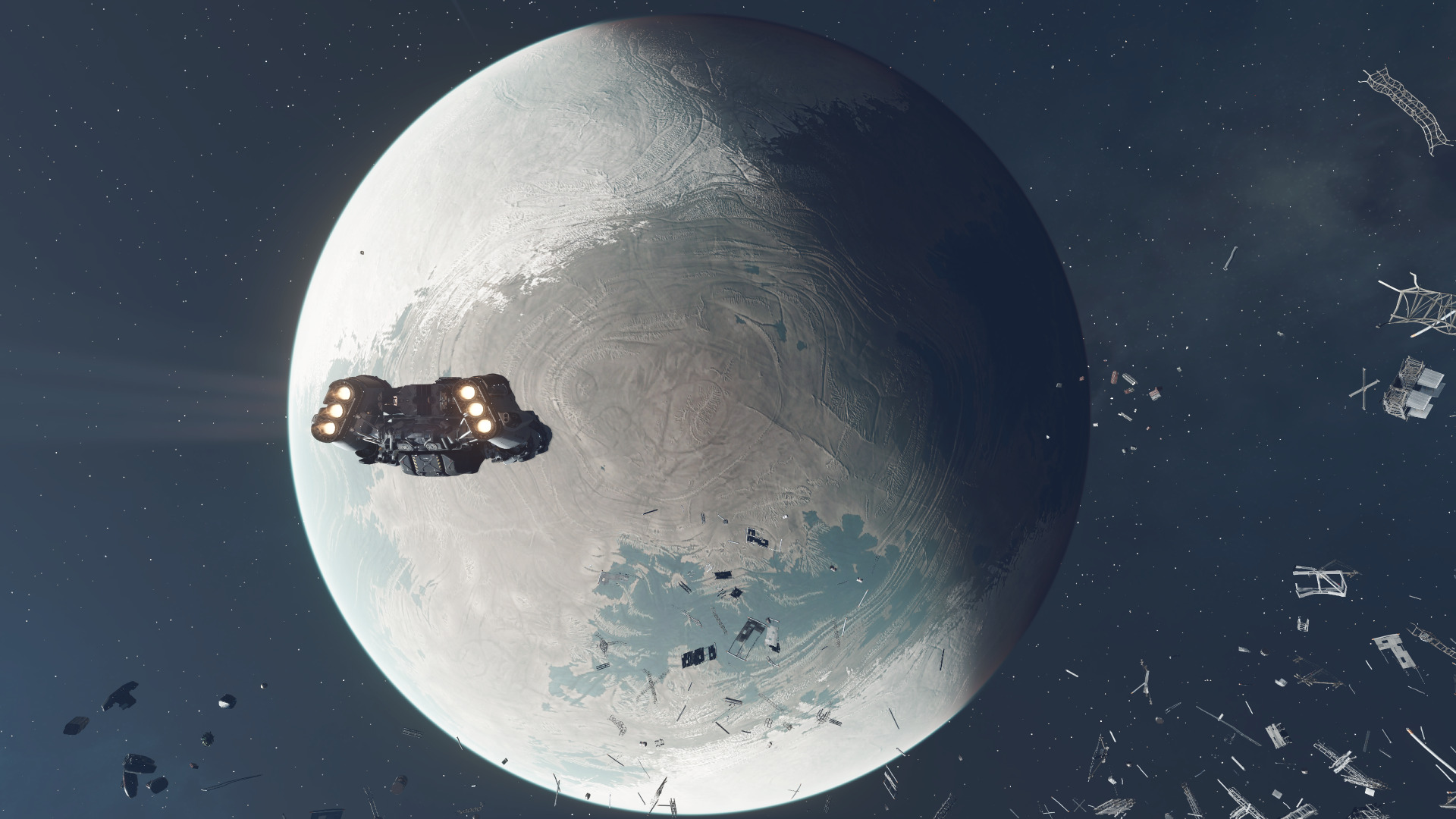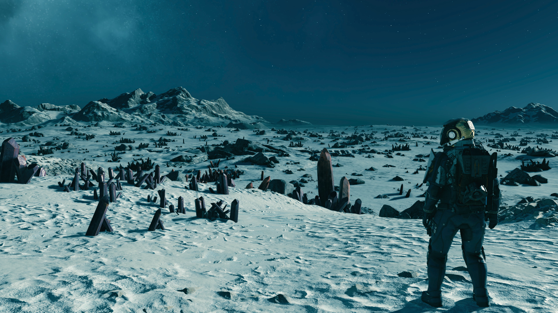 Niestety, gra została mocno ograniczona przez swój wiekowy silnik. Eksploracja kosmosu, która miała być w tym tytule swobodna, nie jest wykonana w dobry sposób. Lądowanie na planecie to zaznaczenie celowniczkiem dowolnego miejsca na globie i filmik. Oczekiwałem tutaj ładowania danych w locie i możliwość niczym nieograniczonego wybrania sobie lądowiska. Choć obszar, który generowany jest przez grę w miejscu lądowania, jest ogromny. Tutaj trzeba pochwalić Bethesdę, bo gra generuje obszar oparty na położeniu słońca i krajobraz wygenerowany przez grę jest logicznie spójny z tym co powinno być, a wygenerowany teren, jest wielkości całej mapy z Far Cry 6. Lądując na styku dnia i nocy, faktycznie zobaczymy wschód lub zachód słońca, a każda z planet posiada swój cykl dobowy oraz warunki atmosferyczne. Warto zaznaczyć, że nie na każdej planecie toczy się życie. Wiele z nich jest jałowymi pustyniami z ekstremalnymi warunkami pogodowymi. Ta gra posiada wiele wspaniałych mechanik, które zostały zasłonięte bezsensownymi loadingami, brzydkimi NPC, czy brakiem wyżej wymienionej eksploracji.