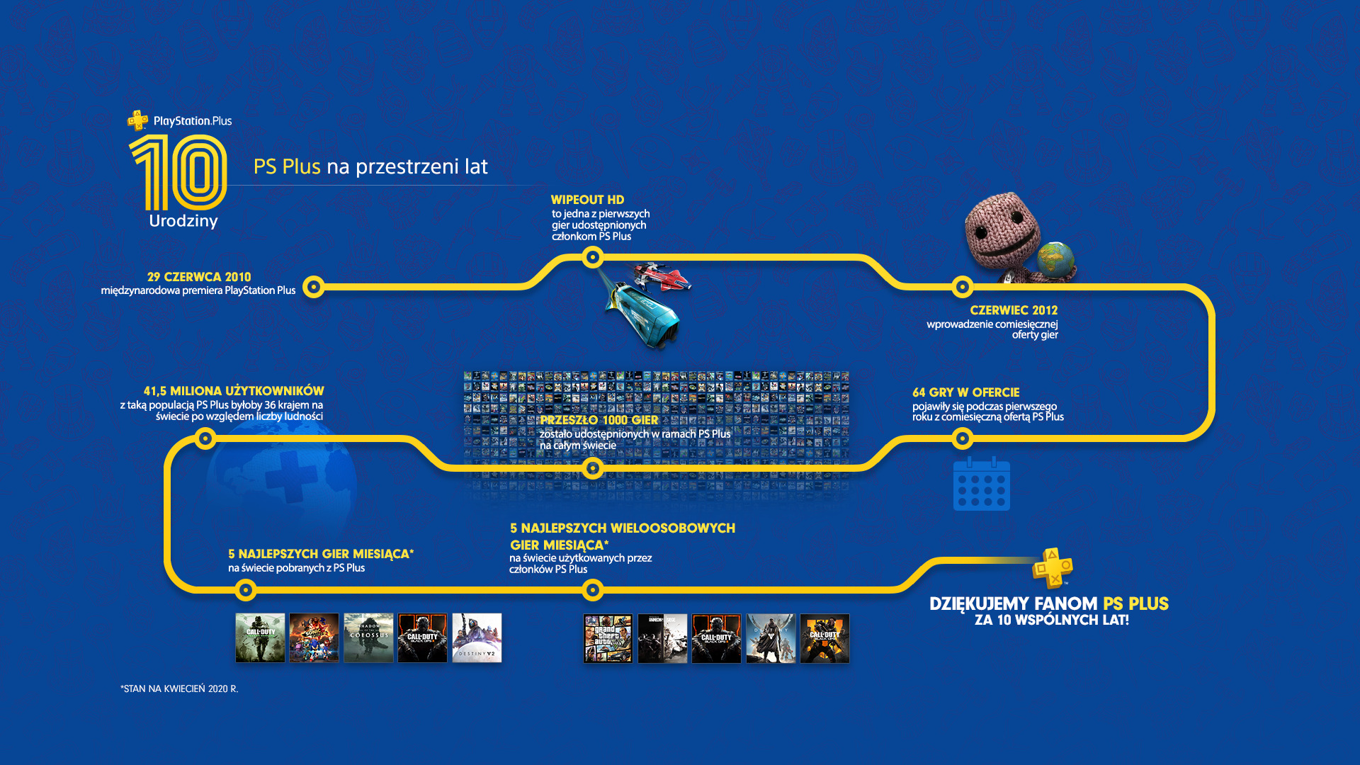 Wczoraj tradycyjnie o 17:30 powinna odbyć się prezentacja gier w ramach abonamentu PS+. Tym jednak razem Sony zaskoczyło i podało listę 3 gier nieco wcześniej ( Lipiec 2020 - darmowe gry w PlayStation Plus). Nie stało się tak bez powodu - dokładnie 29 czerwca wypadła bowiem 10 rocznica powstania usługi, która co miesiąc oferuje darmowe gry (na początku na PS3 i PSP tryb online wciąż pozostawał bezpłatny).