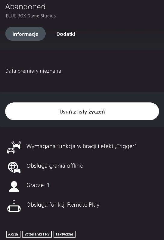 Co ciekawe, Abandoned jest już widoczne w PS Store (chociaż niewidoczne w wyszukiwaniu na PC) a w aplikacji na telefony jedną z kategorii przypisanych do gry jest "Akcja, Taktyczna" - gra która miała by być pierwszoosobowym horrorem nijak nie będzie taktyczna (może być natomiast skradanką), natomiast kategorie te świetnie pasują do sloganu Tactical Espionage Action, czyli gatunku który Kojima uknuł właśnie na potrzeby określenia swojego Opus Mangum.