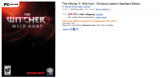 Amazon uważa, że Wiedźmin 3: Dziki Gon zadebiutuje dokładnie 30 września. Jako dowód zamieszczam fam screena z ofertą.