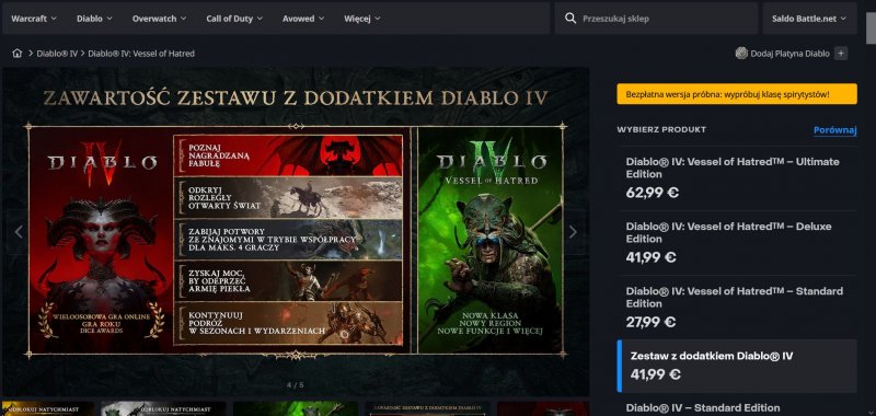 Diablo IV z dodatkiem Vessel of Hatred: 180,50 PLN lub 41,99 euro (176,44 PLN)