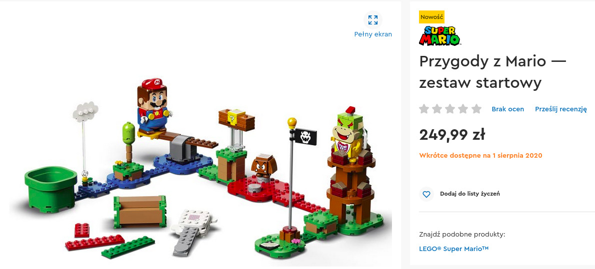 Niecały miesiąc temu Lego zapowiedziało serię zestawów z Super Mario ( Lego wprowadza zestawy z Super Mario). Pierwszy z tych zestawów pojawił się już w oficjalnym sklepie, wraz z polską ceną, można mu się więc przyjrzeć.