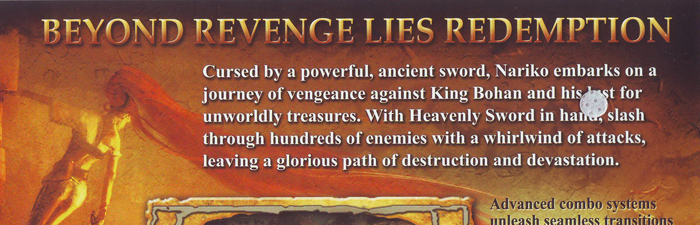 i okładkę Heavenly Sword, zobaczymy, że tekst jest bardzo podobny.