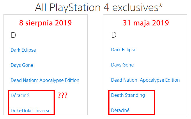 Jeśli ww. rewelacje się nie potwierdzą, to Death Stranding zadebiutuje 8 listopada bieżącego roku jedynie na PS4.