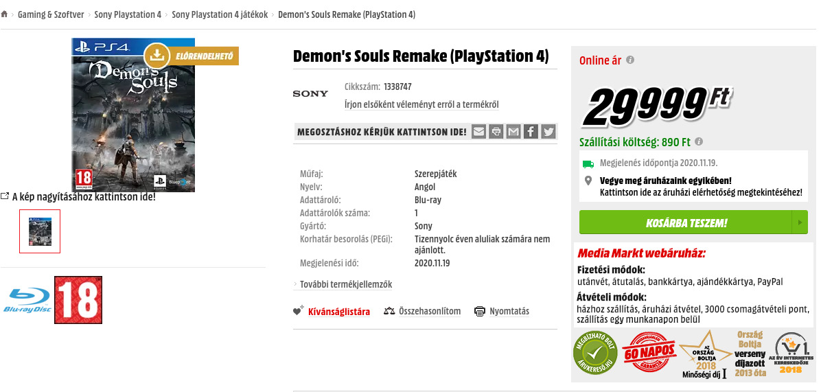Jedynym światełkiem w tunelu na dzień premiery pozostawało Demon's Souls, będące remasterem tej samej gry z początków PS3, co sprawia, że różnice graficzne były kolosalne. Teraz jednak wraz z ofertą węgierskiego MediaMarkt wygląda, że to kolejna gra w którą taniej będzie można zagrać na obecnym sprzęcie.