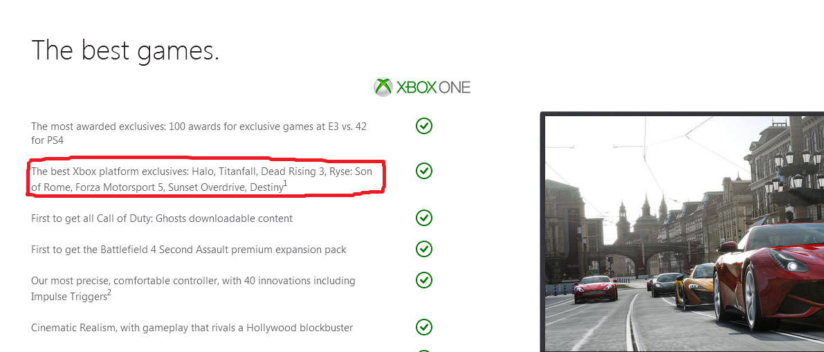 Na oficjalnej stronie Xbox One pojawiła się informacja, że Destiny będzie tytułem ekskluzywnym dla konsoli Microsoftu. Przy takich tytułach jak: Halo, Titanfall, Dead Rising 3, Forza 5, Sunset Overdrive widnieje również Destiny z dopiskiem - The Best Xbox platform Exclusives. Najprawdopodobniej, to już kolejna wpadka jaką zaliczył Microsoft w przeciągu tych paru tygodni. Nie wiem czy pamiętacie, ale jakiś czas temu na oficjalnym Twitterze firmy pojawiła się fotka z Killzone: Shadow Fall, jako tytułu zmierzającego na Xbox One.