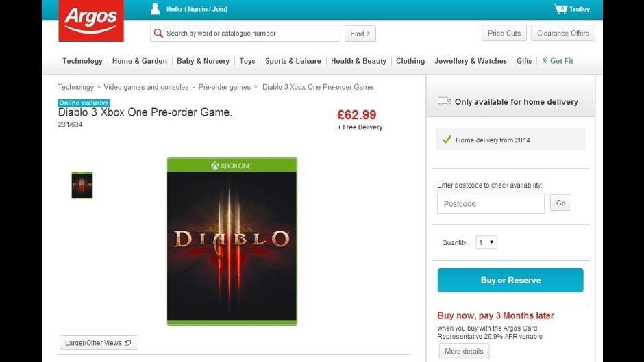 Można było się spodziewać, że Blizzard nie poprzestanie na wydaniu Diablo III: Reaper of Souls na pecety i PlayStation 4. Chociaż oficjalnej informacji o wersji na Xbox One jeszcze nie otrzymaliśmy i zapewne prędko jej nie dostaniemy. Za to parę sklepów internetowych umieściło w swojej ofercie Reaper of Souls w edycji na Xbox One, jednak bez wstępnej daty premiery. Wpisy z Best Buy Canada i Futureshop szybko zniknęły, ale serwis IGN zdążył porobić screeny, które znajdziecie poniżej.