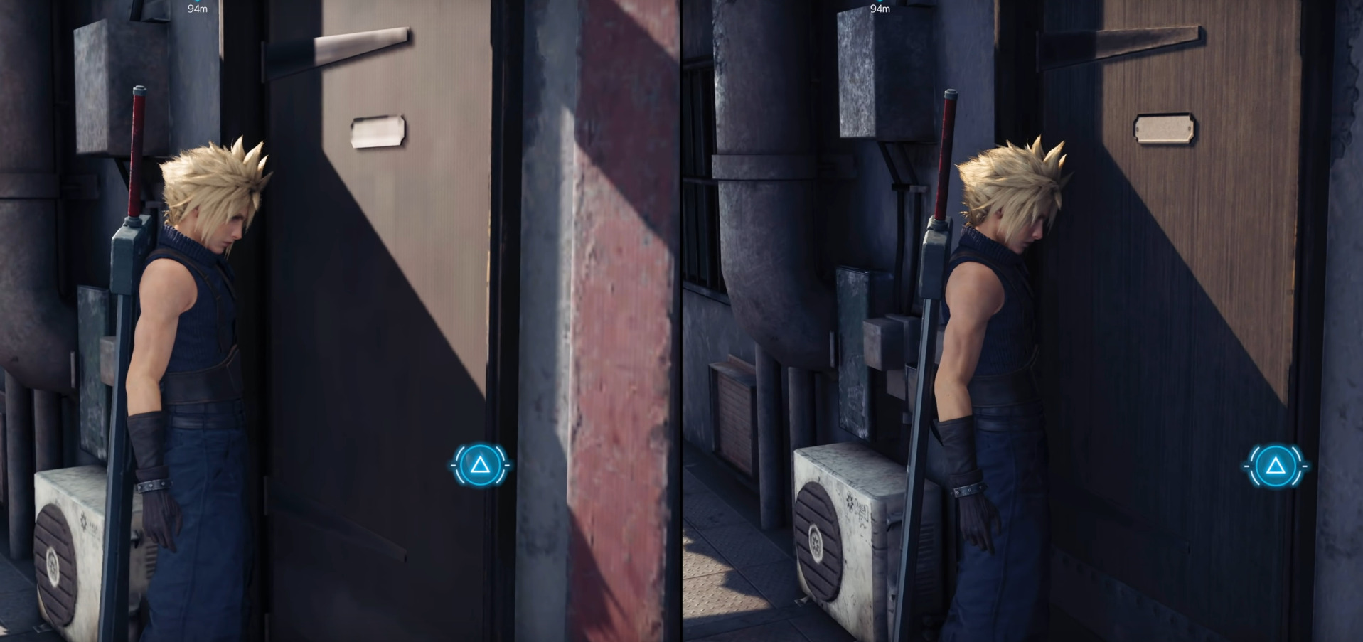 Intergrade względem zwykłego remake wnosi ulepszenia na next-genową konsolę, na którą składają się lepsze oświetlenie, poprawione tekstury i szybszy czas wczytywania i trzeba przyznać, że tutaj Square spisało się świetnie. Gra faktycznie wczytuje się w oka mgnieniu, a osoby które przeczesały każdy zakamarek zauważą, że spora część z nich wygląda inaczej. Niestety, nie wszystkie elementy doczekały się odświeżenia i część obiektów, które znajdziemy pod ścianami korytarzowych lokacji w remasterze przygody grupy Avalanche, nadal razi niską ilością detali czy teksturą tak słabą, że piksele są wielkości płyt chodnikowych, a złośliwi twierdzą nawet, że po prostu są to zasoby zrobione jeszcze na PS2, przed pokazaniem słynnego tech-demo z PS3 z E3 2005.... Na szczęście słynne już "drzwi" z hostelu w którym nocuje na początku gry Cloud zaliczają się do tej "ulepszonej" części: