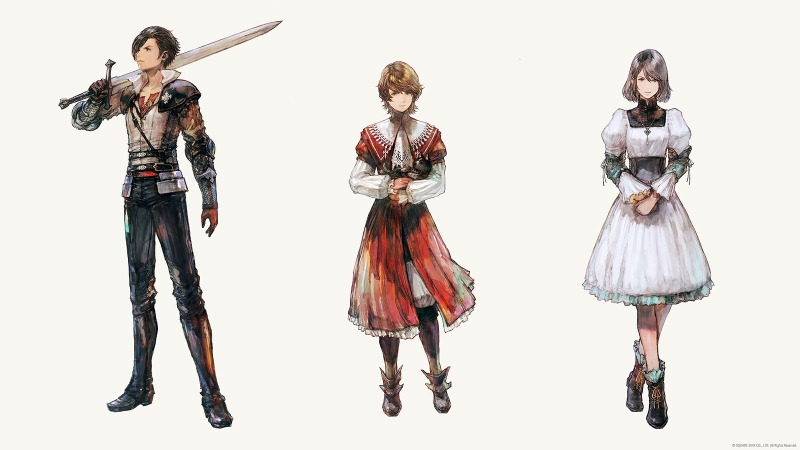 Bohaterów ma być trzech - postaci tak japońskie, że pierwszy z lewej, Clive, ma zapewne kurtkę z glonów nori... Druga postać to Joshua (chociaż wygląda damsko), a trzecia, przypominająca księżniczkę Ashe z FF XII to Jill. Wszyscy oczywiście z rodziny królewskiej (chociaż Jill jest przysposobiona, co zapewne nie pozostanie bez wpływu na fabułę). Uwierzycie na podstawie tego artworka, że Jill ma raptem 12 lat?