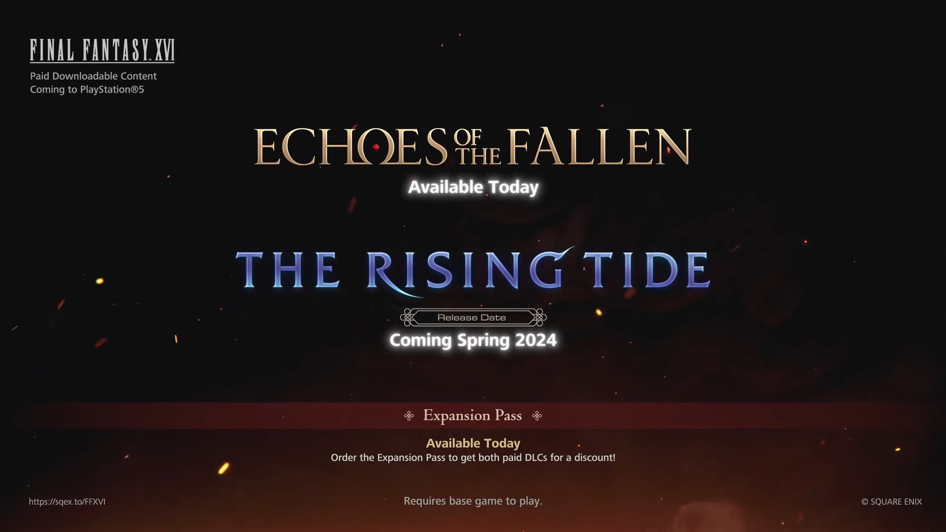 Myśleliście, że Final Fantasy XVI nie otrzyma już dodatków? A jednak! Fani gry wkrótce będą mogli cieszyć się dwoma nowym fabularnymi DLC, a jeden z nich już dzisiaj: Echoes of the Fallen zadebiutował już dzisiaj na PlayStation Store! Drugie DLC, zatytułowane The Rising Tide, ukaże się wiosną 2024 roku. Oba dodatki są płatne, ale gracze mogą zakupić Final Fantasy XVI Expansion Pass, aby skorzystać z obu rozdziałów w obniżonej cenie.
