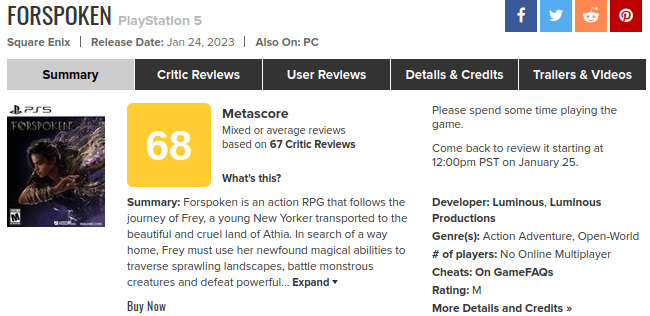 Jeśli jednak nie jesteście nastawienie na najwyższych lotów ideał, to wygląda, że mimo ocen na poziomie 68/100 możecie się całkiem nieźle bawić. Mocno podzieleni są chociażby PCtowi gracze, którzy niemal równo po połowie podzielili się na zwolenników i przeciwników gry. O tym jak oceniają grę użytkownicy Metascore dowiemy się dopiero jutro, gdyż dopiero po 24h od premiery odpalana jest możliwość oddawania głosów przez śmiertelników.