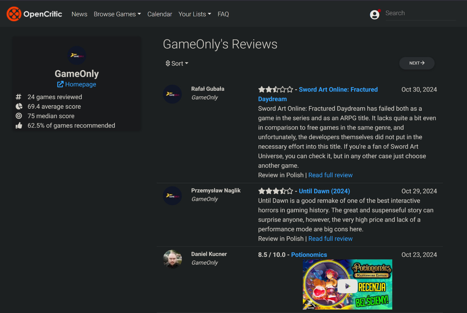 GameOnly jest już na OpenCritic! To nowy rozdział dla całej strony