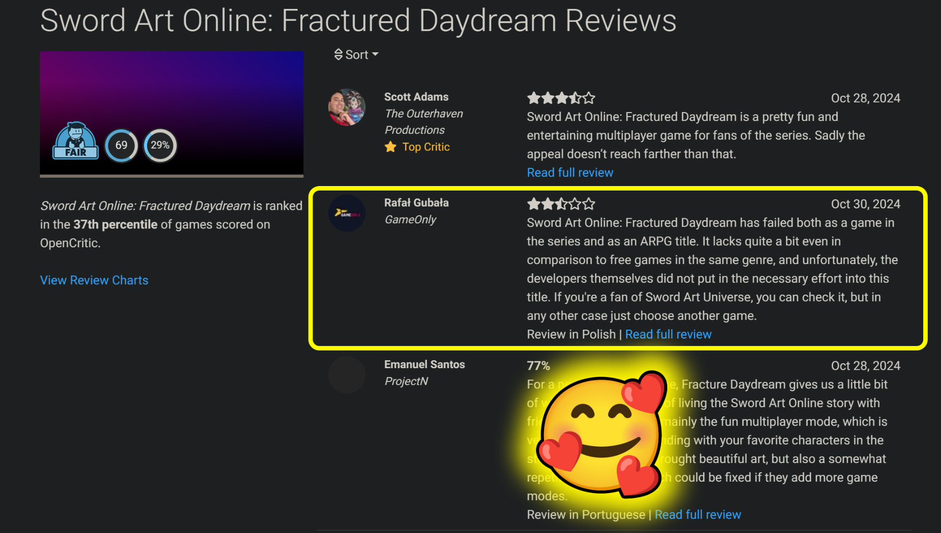 Otrzymałem właśnie e-mail, na który bardzo długo czekałem. GameOnly zostało właśnie przyjęte do serwisu OpenCritic skupiającego najlepszych recenzentów z całego świata! Od dziś recenzje naszej redakcji będą dostępne na tym właśnie portalu , a każdy z nas otrzymał dedykowaną mu podstronę, gdzie będzie zamieszczał artykuły. ?