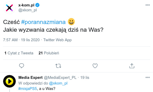 A jeśli już przy szydzeniu jesteśmy, to akurat poniższa cyniczna wymiana zdań między x-komem a Media Expert na pewno rozbawi wszystkich tych, których x-kom oszukał przy okazji premiery PS5, której to konsoli nigdy nawet nie mieli zakontraktowanej do sprzedaży. Co więcej, nawet niektórzy gracze zamawiający tam Xboxy Series nie dostali sprzętu, chociaż w innych sklepach stoi on na półkach i go nie brakuje...