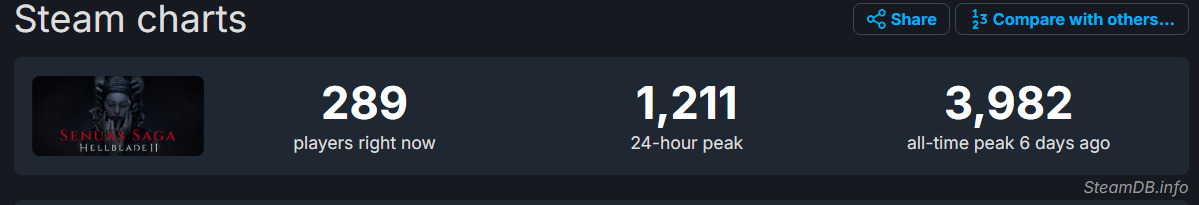 Hellblade II na Steam szoruje po dnie...