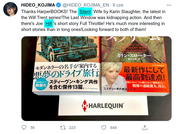 Myślę, że więcej nie trzeba dodawać w temacie "porzuconych" gier Kojimy. Sam trailer Death Stranding z kartonem odkładanym na półkę, który oznaczał prawdopodobnie nie tylko porzuconą serię Metal Gear Solid, ale też to, że Kojima do niej nie wraca (Sam nie schodzi też do pomieszczenia które z MGS się kojarzy), to już jedno z nawiązań do rzeczy porzuconych. Gdy jednak na twitterze i instagramie wrzuca zdjęcia książek z Silent oraz Hill na okładach, albo prezentuje zdjęcie płyty, na której są piosenki ze słowem Silent, a okładka nawiązuje jawnie do trailerów Abandoned, to chyba wystarczająca wskazówka. A pojawiające się co jakiś czas plotki o remasterach lub kolejnych częściach obi gier ( Konami dementuje powstawanie Silent Hilla na PS5), zdają się tylko to potwierdzać. Kto wie, może to co porzucone, wcale takie niedługo nie będzie.